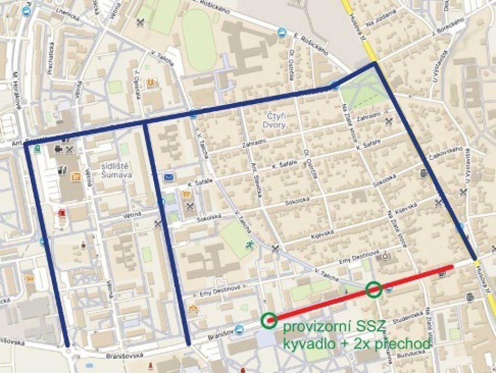 Branišovská - 20.3.-9.11.2026 uzavřeno kromě MHD