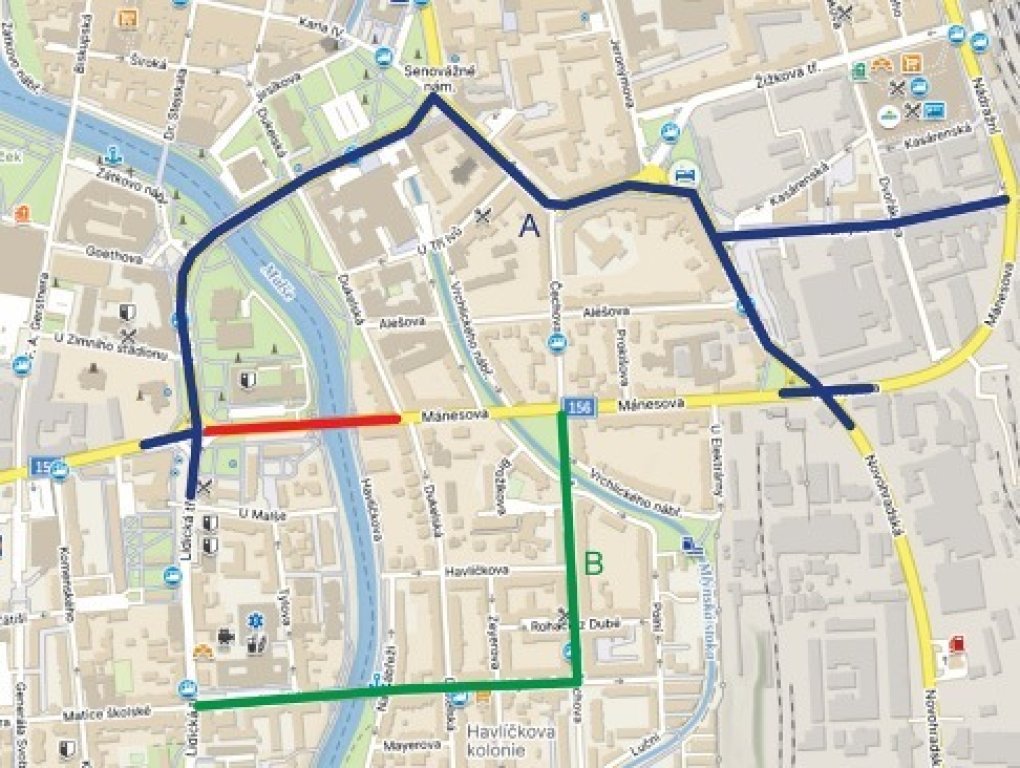 Mánesova (Koh-i-noor) - 7.4.-30.11.2026 omezení dopravy do 1 pruhu
